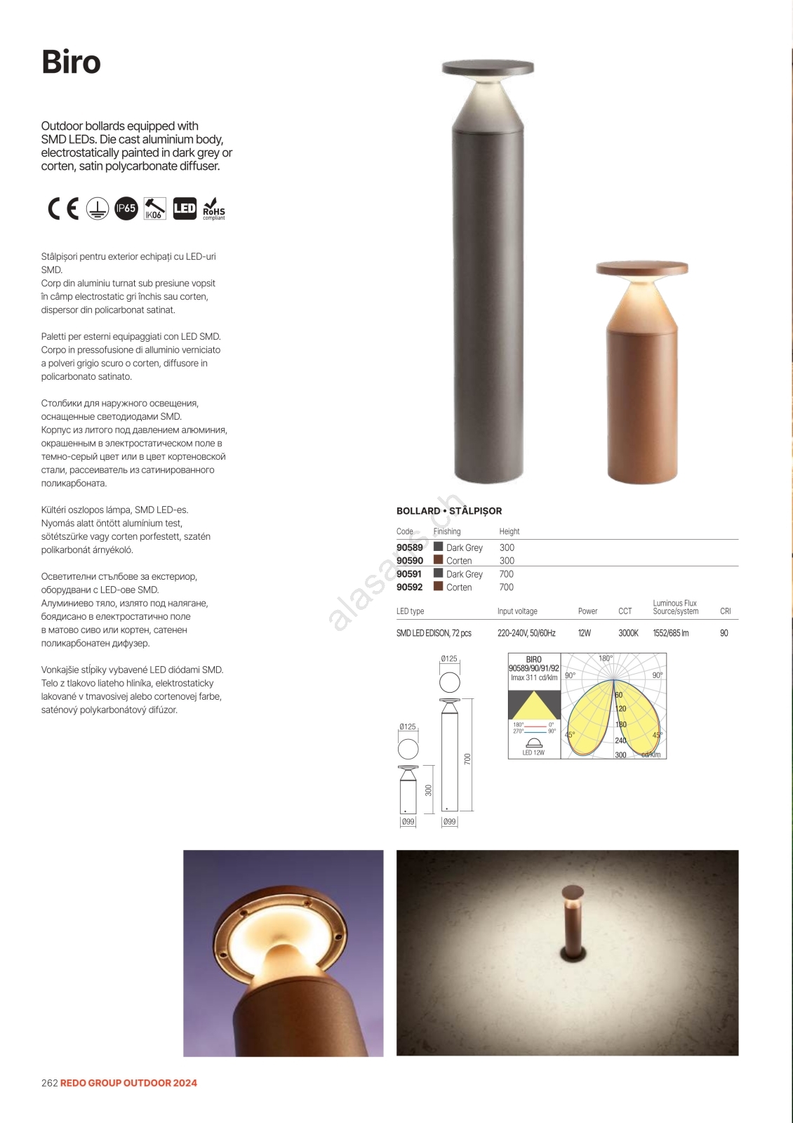 Redo 90589 - Lampe d'extérieur LED BIRO LED/12W/230V 3000K 30 cm CRI 90 IP65 anthracite