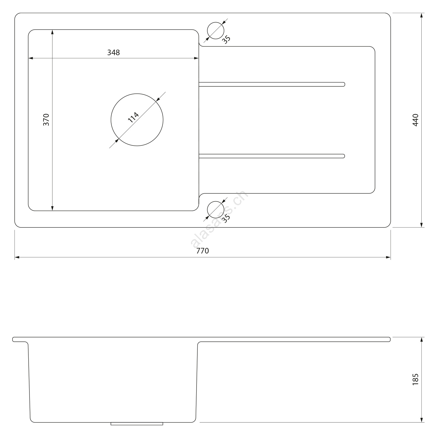 • Il est doté d'un égouttoir et fabriqué en granit de haute qualité.
