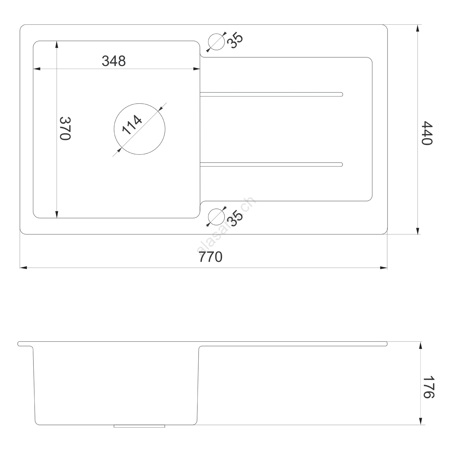 • Le colis comprend une bonde à panier avec siphon et un gabarit de découpe.