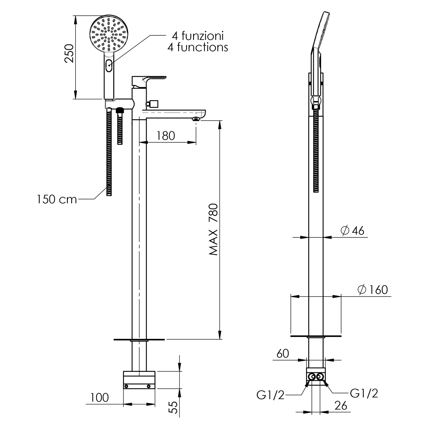 Sapho - Kit baignoire PAX avec mitigeur, finition noir mat