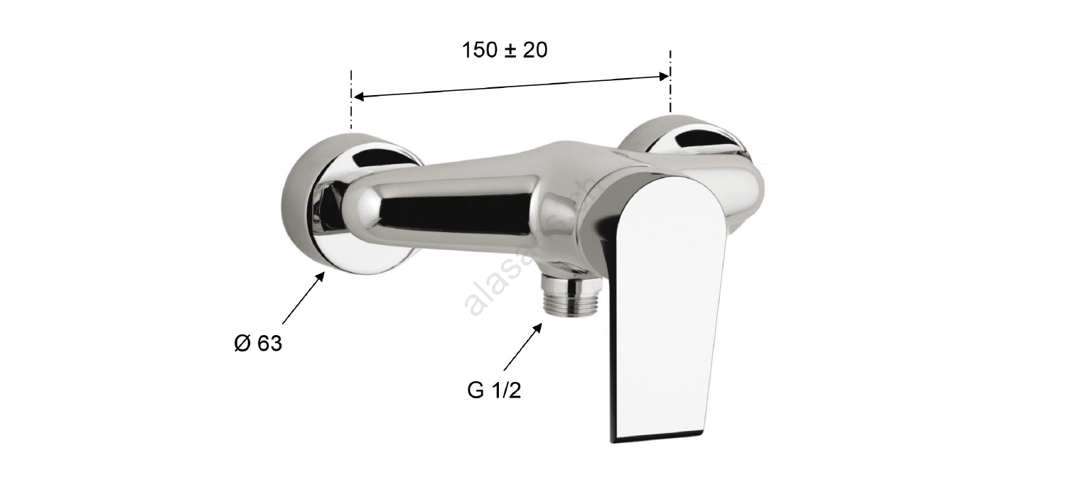 • Ce mitigeur de douche possède un corps cylindrique et un bec carré.