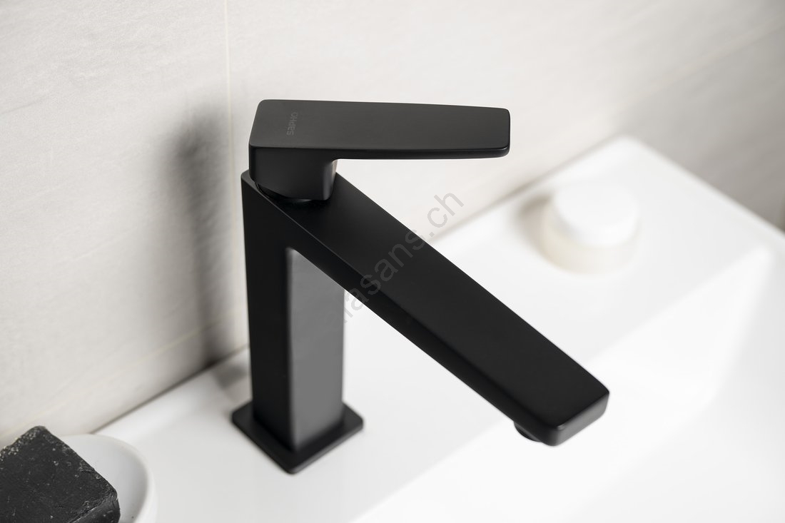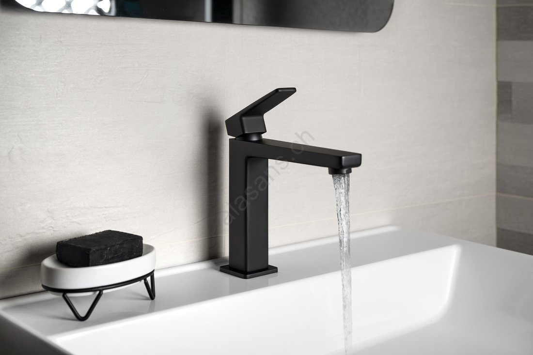 • Ce mitigeur pour lavabo affiche un design moderne et une finition noire mate.