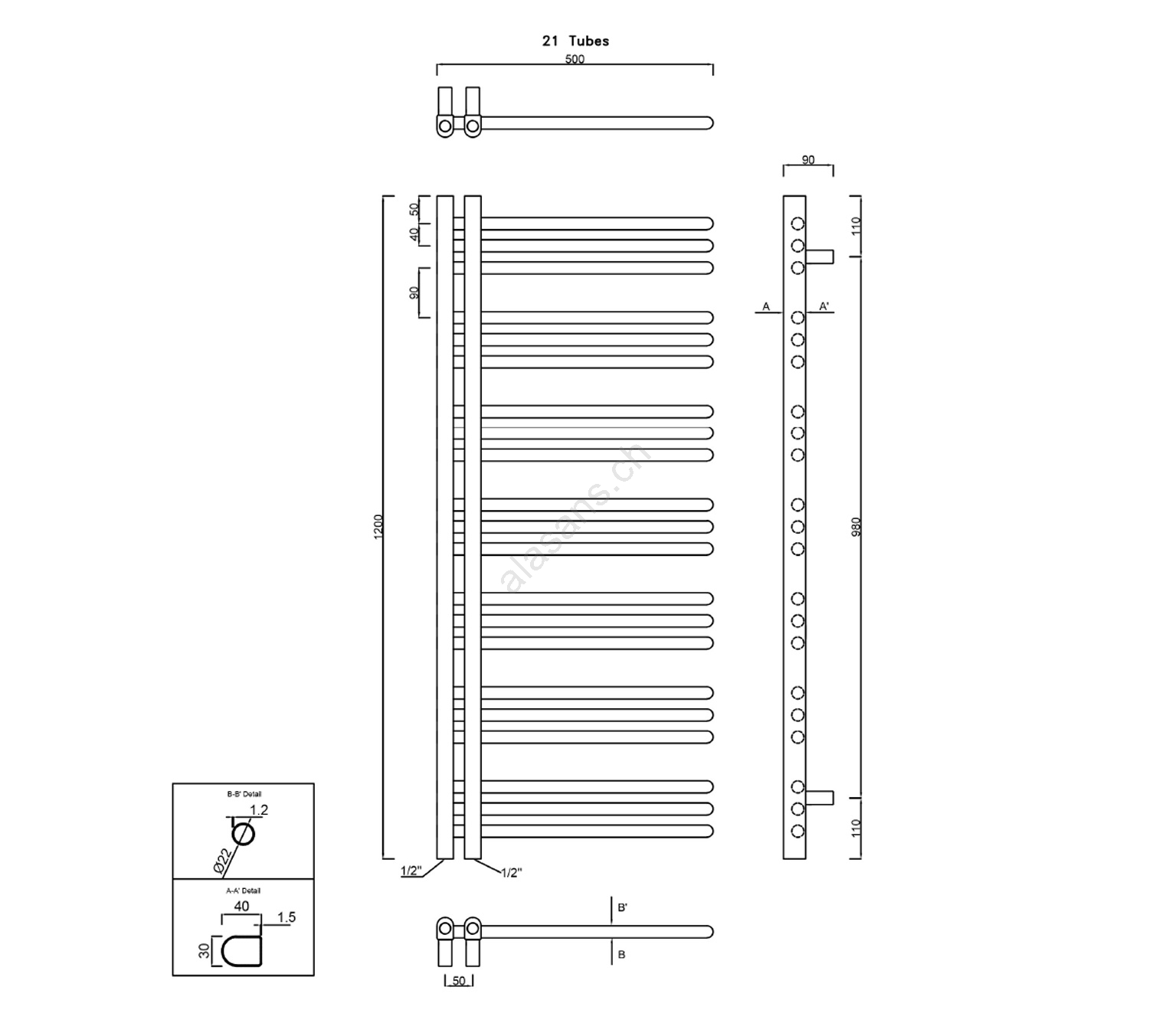 Sapho - Sèche-serviettes DORLION 378W/230V 50x120 cm chromé brillant