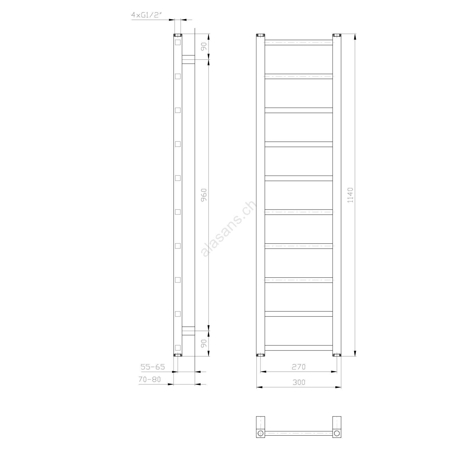 Sapho - Sèche-serviettes METRO LIGHT 211W 30x114 cm blanc