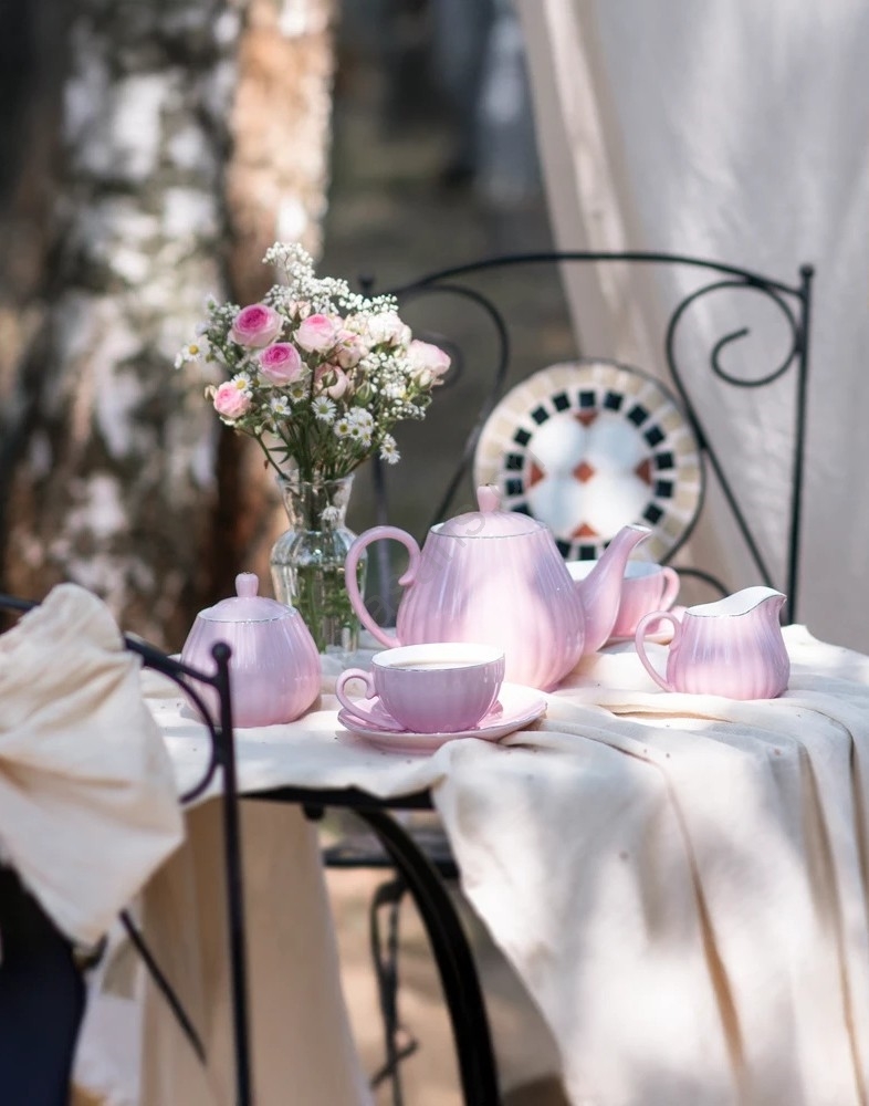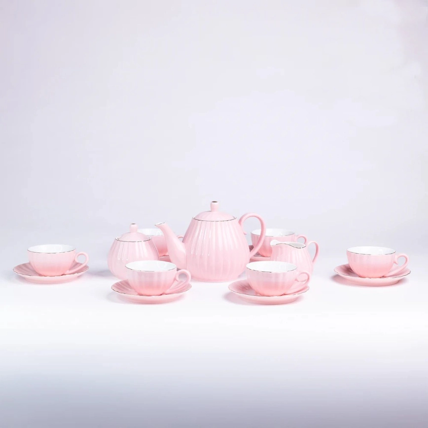 Service à café en porcelaine 15 pièces, rose