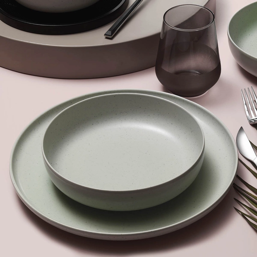 Service de table 18 pièces vert/porcelaine