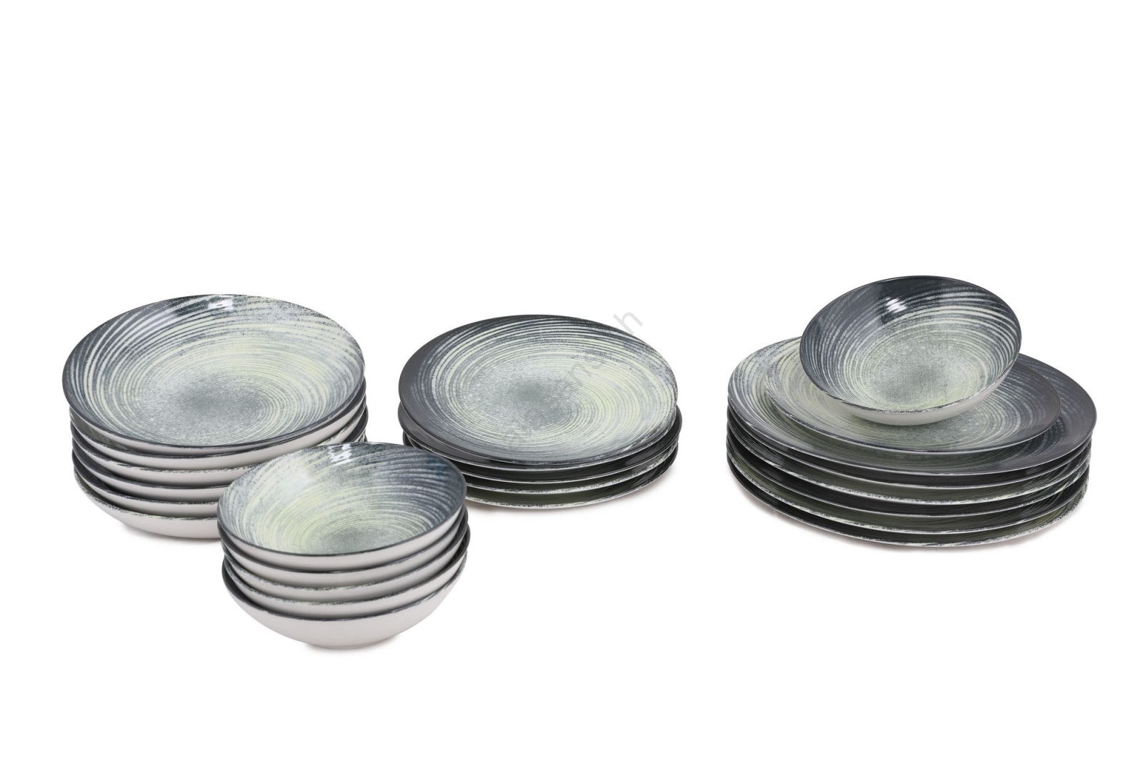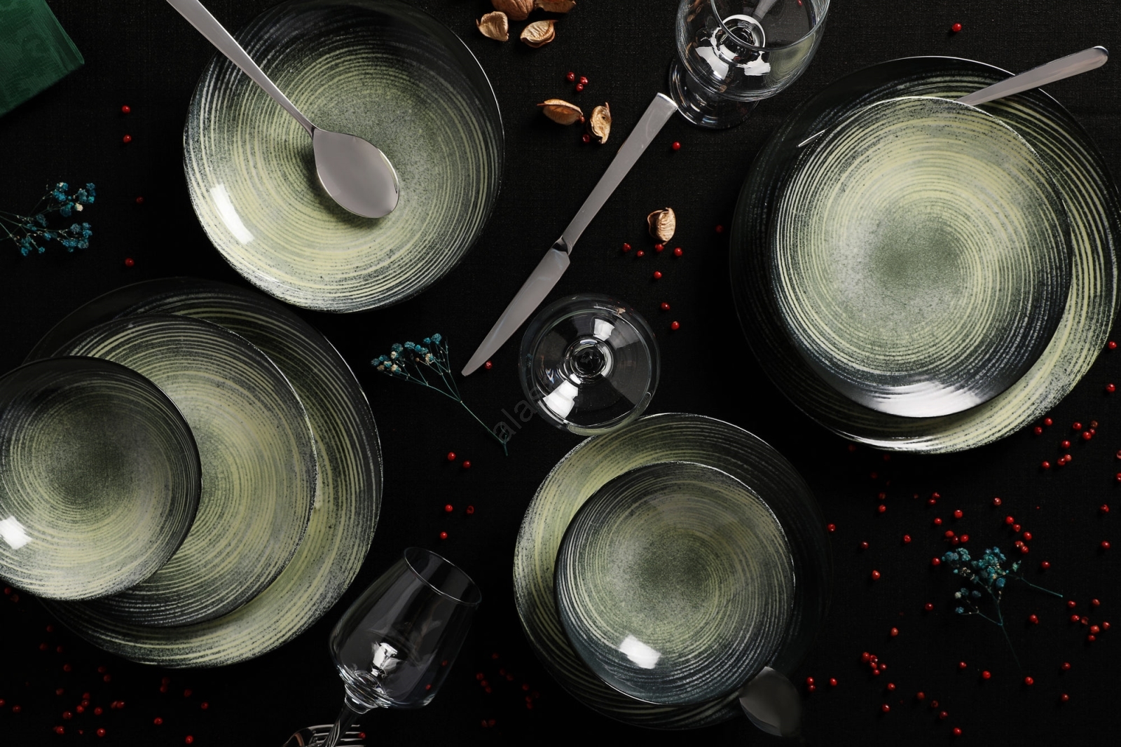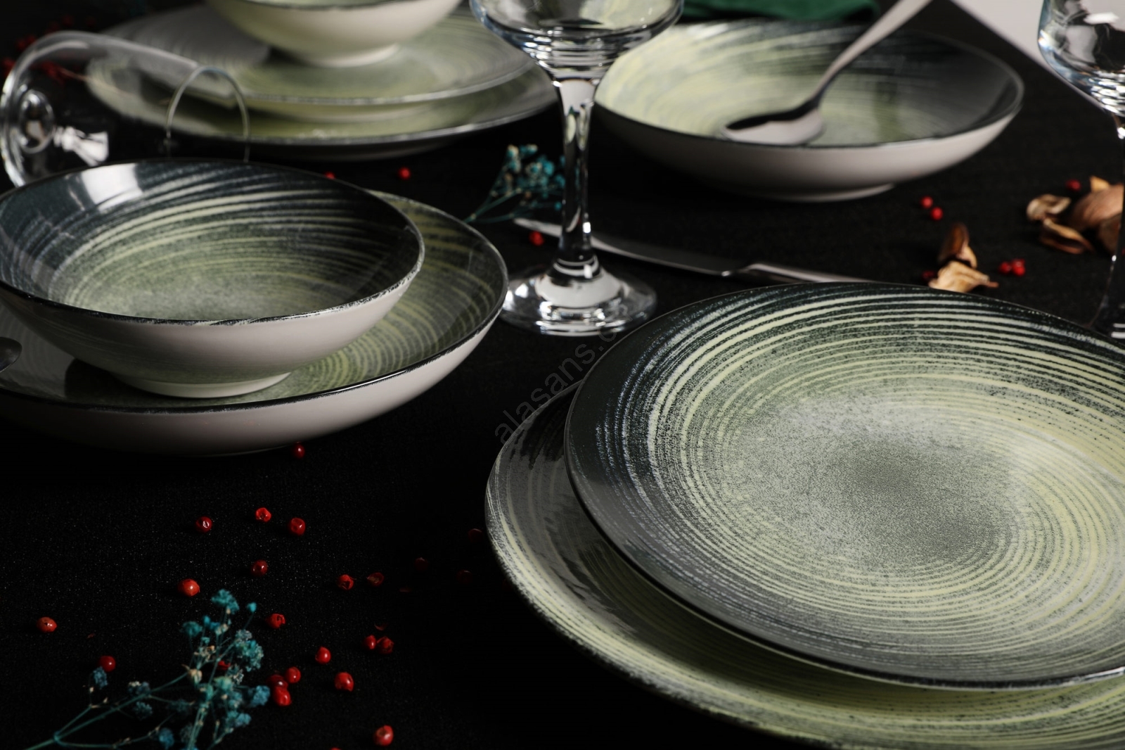 Service de table 24 pièces en porcelaine, vert/noir