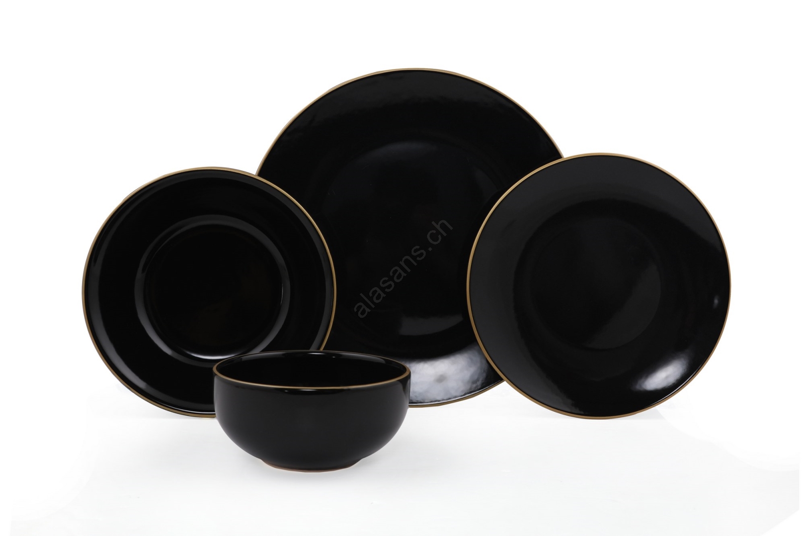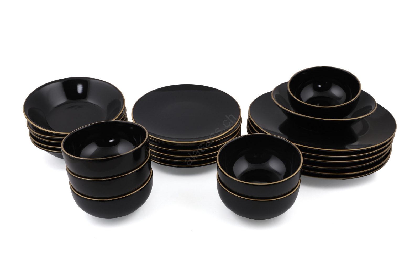 Service de table 24 pièces noir/doré/en grès