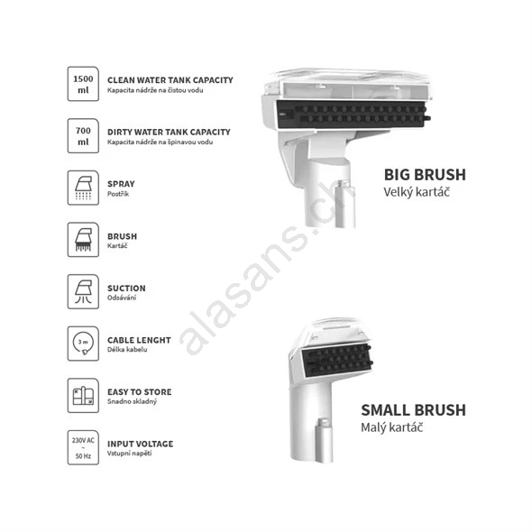 • Élimine les saletés en profondeur, la poussière, les allergènes et les taches tenaces.
