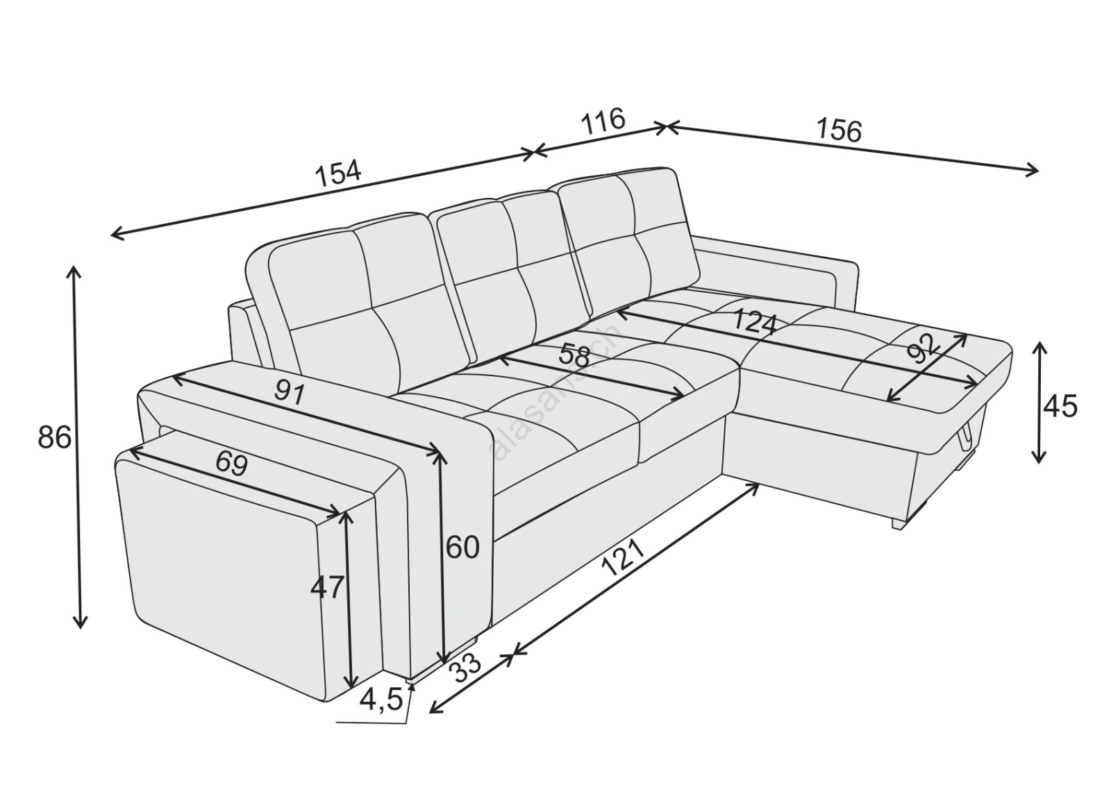 • Grâce à ses surpiqûres modernes et son design étudié, ce canapé d'angle est idéal pour les petits espaces, tout en offrant un grand couchage et un important espace de rangement.