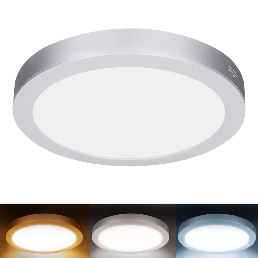 Plafonnier LED 2 en 1 (apparent/encastrable) 18W/230V 3000/4000/6000K Ø 22,5 cm IP54 argenté