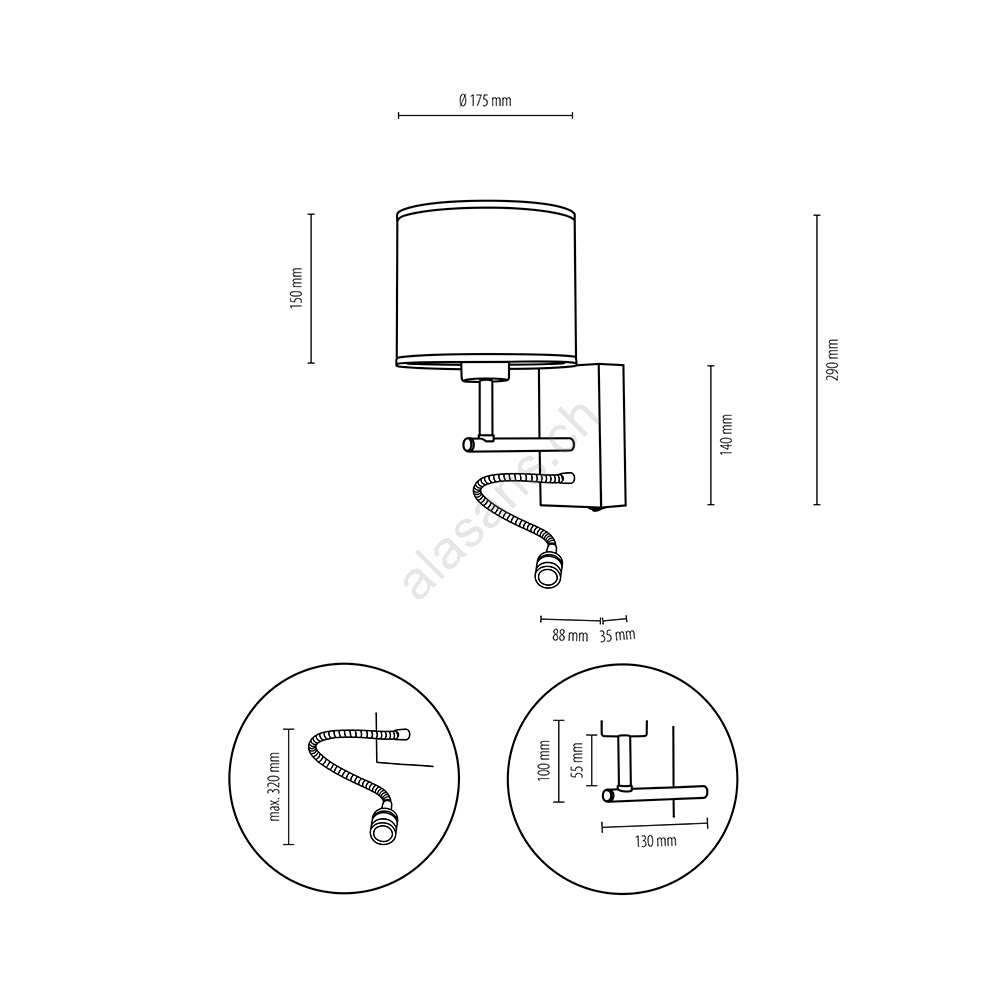 • Éclairage ponctuel flexible et réglable, idéal pour la lecture.