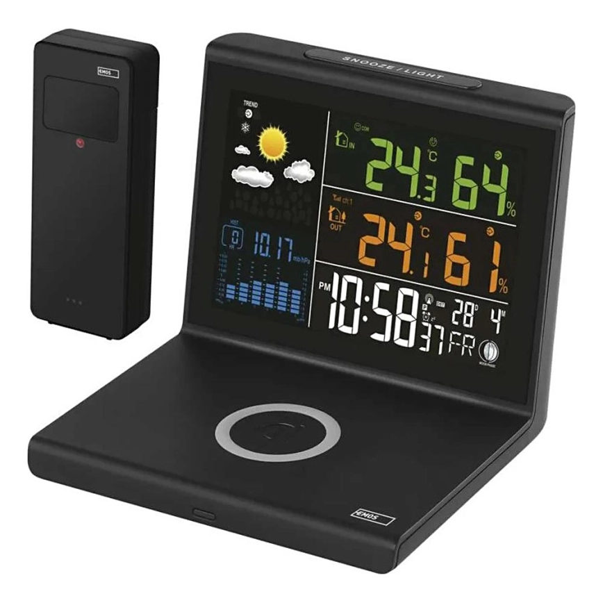 Station météo avec recharge sans fil 5V, alimentation 2x AA + 2x AAA, noire
