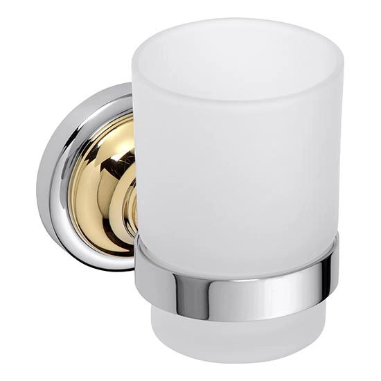 • Porte-brosses élégant en chrome et or qui apporte une allure luxueuse à votre salle de bain.