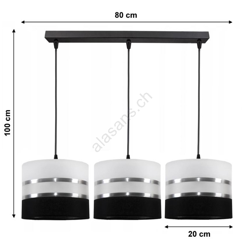 Suspension avec fil CORAL 3xE27/60W/230V noir et blanc
