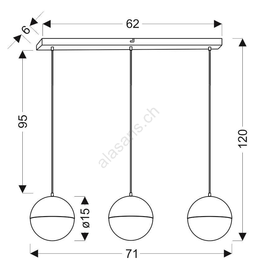 Suspension filaire FURNI 3xLED/5W/230V noire