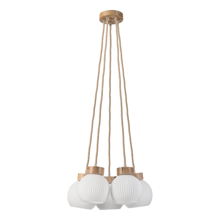 Suspension sur câble LOOMIS 5xE27/15W/230V 83 cm beige/chêne