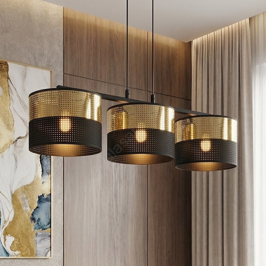 Suspension sur câble LUX 3xE27/15W/230V noir/doré