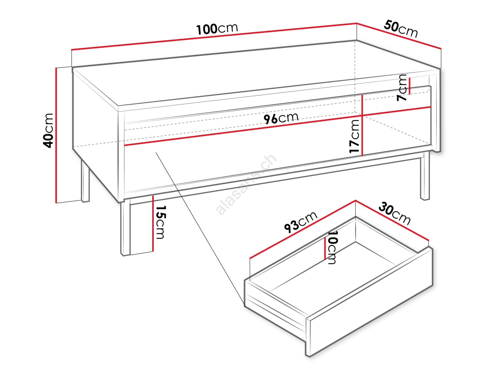 • Table basse avec tiroir pratique pour ranger les objets que vous souhaitez garder à portée de main.