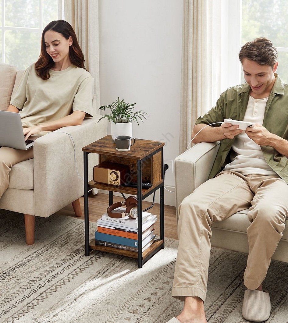 Table d'appoint ROD avec prises électriques intégrées et ports USB, marron/noir