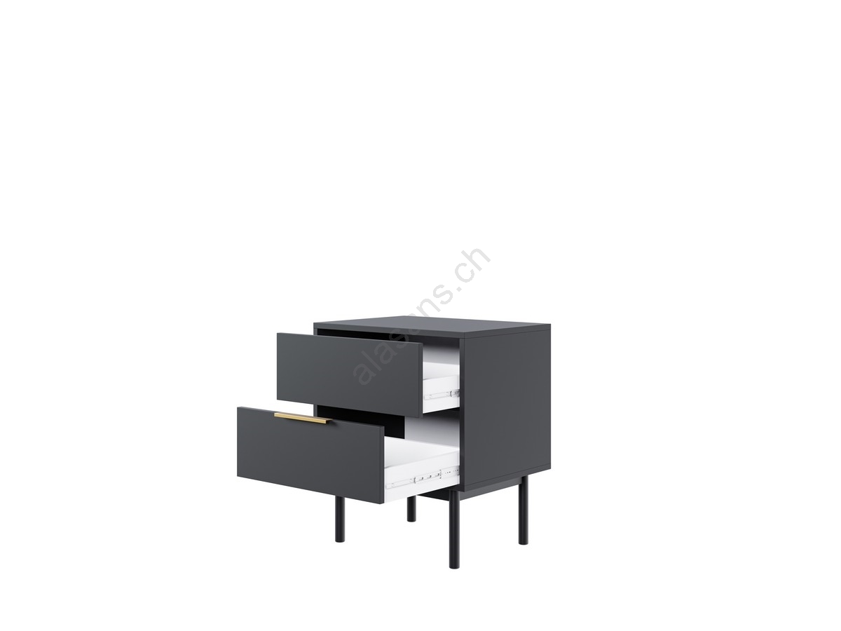 • Il dispose de deux tiroirs : le tiroir inférieur avec poignée et le tiroir supérieur sans poignée pour un effet minimaliste et épuré.
