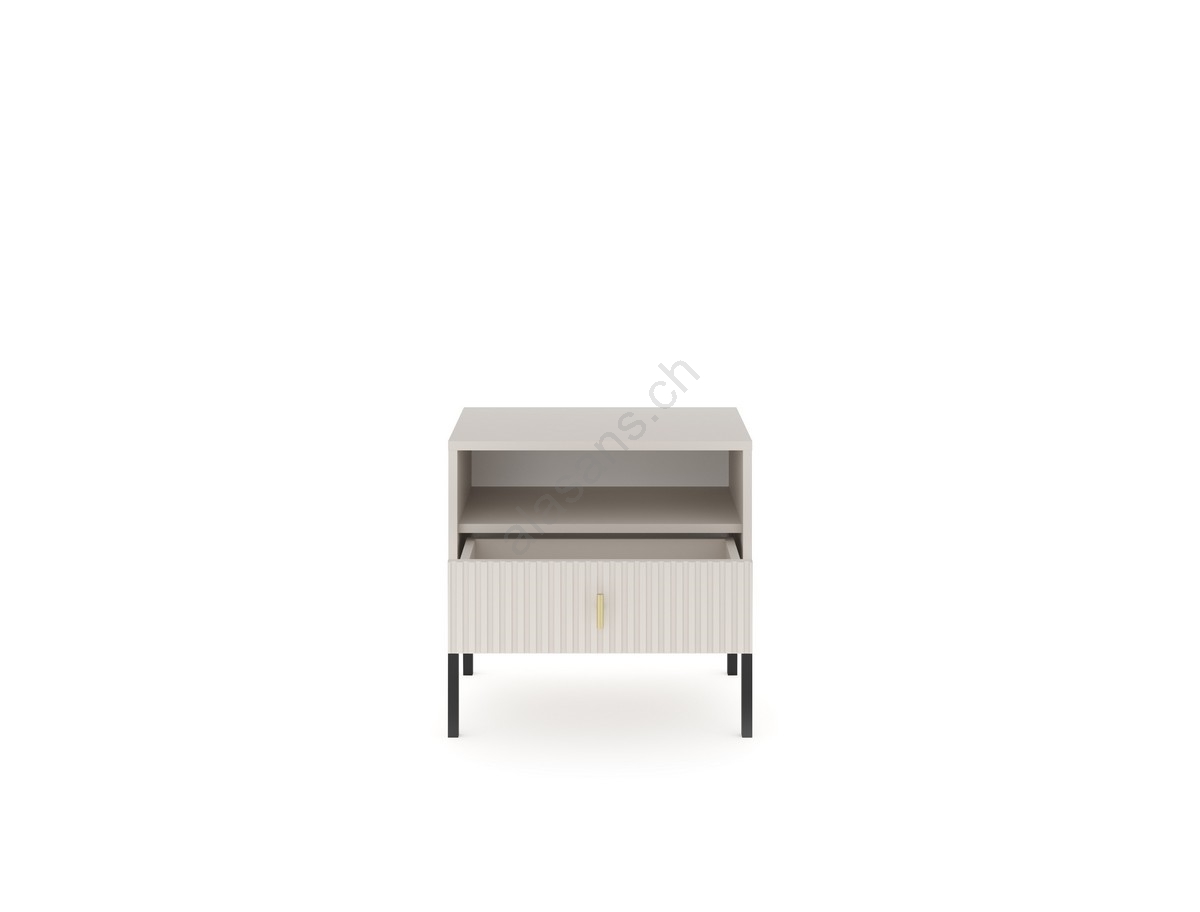 • Il est doté d'un tiroir orné de rainures verticales pour un effet visuel raffiné.