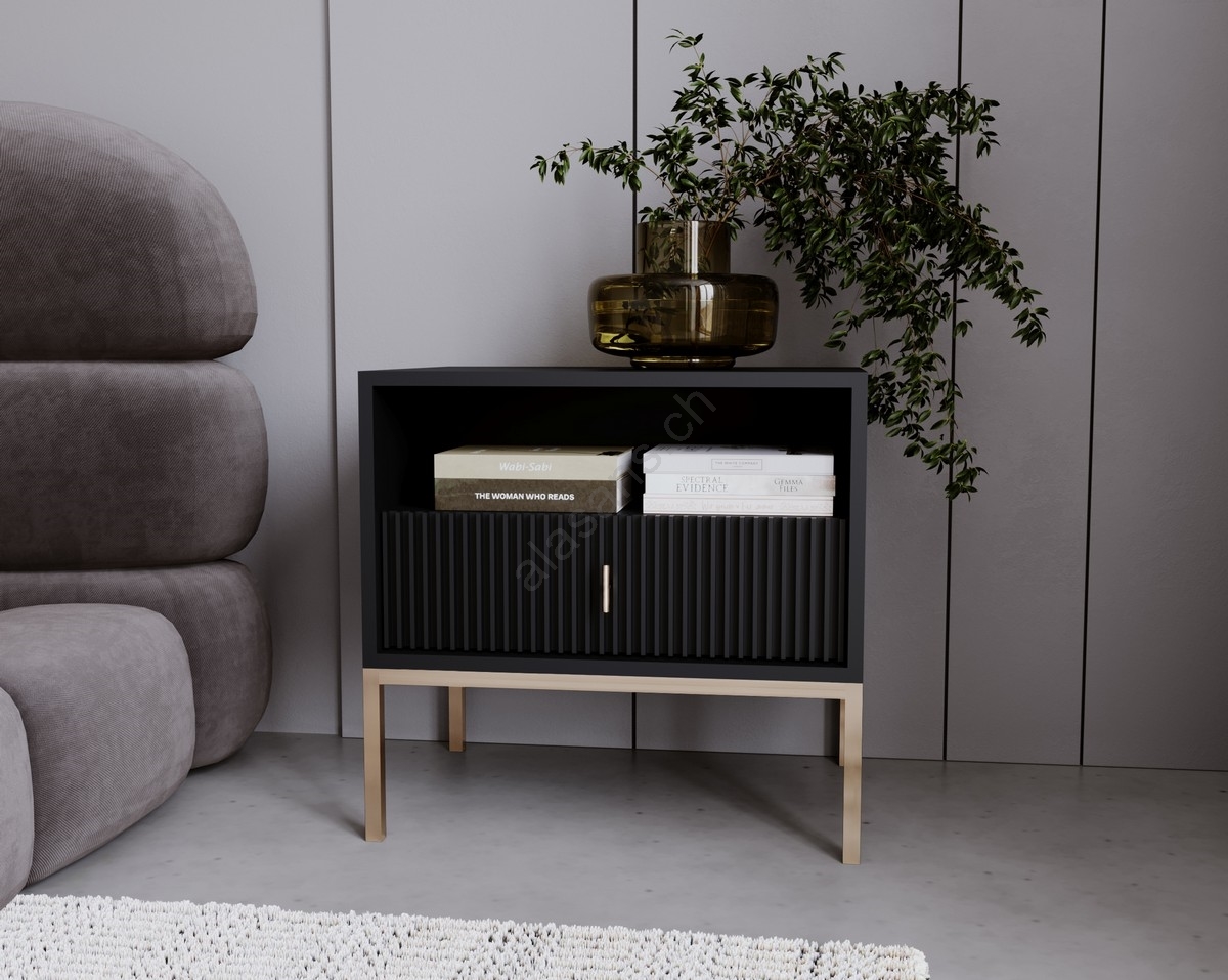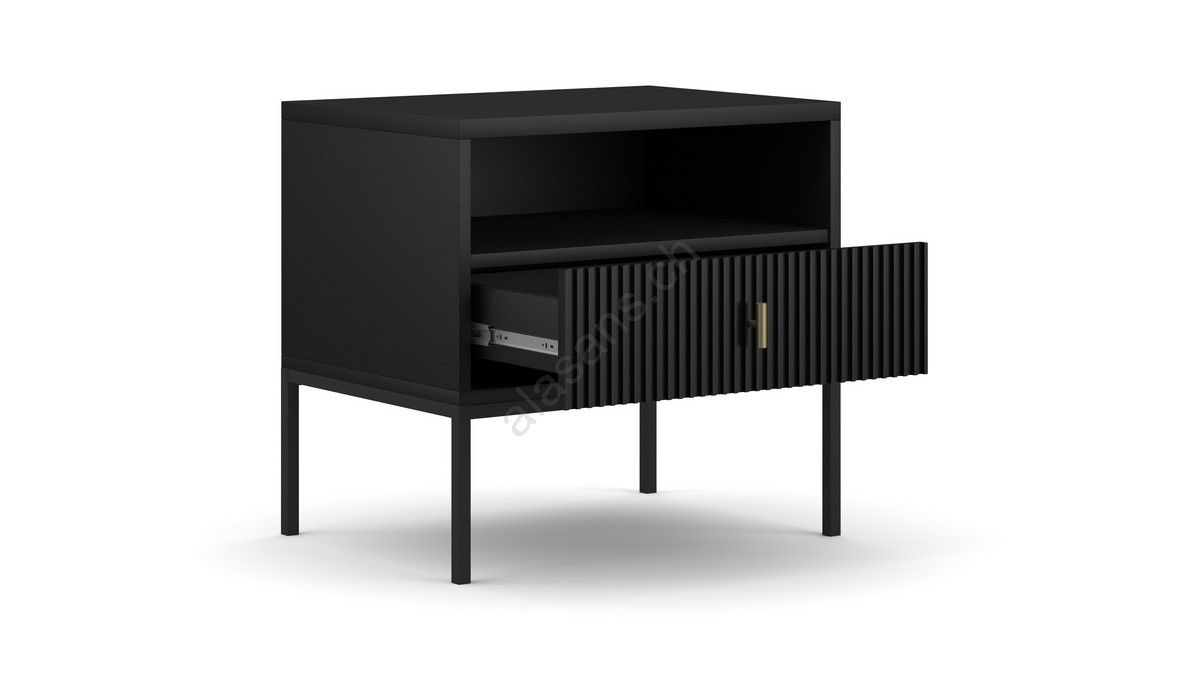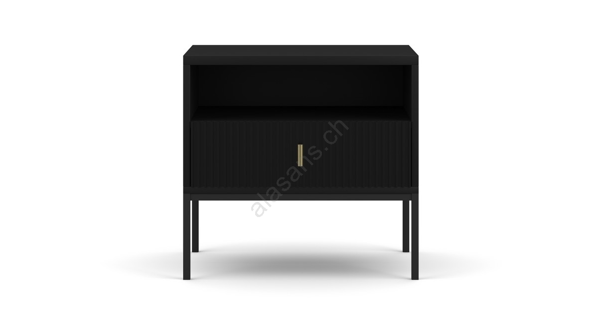 • Elle est équipée d'un tiroir orné de cannelures verticales pour un effet visuel raffiné.