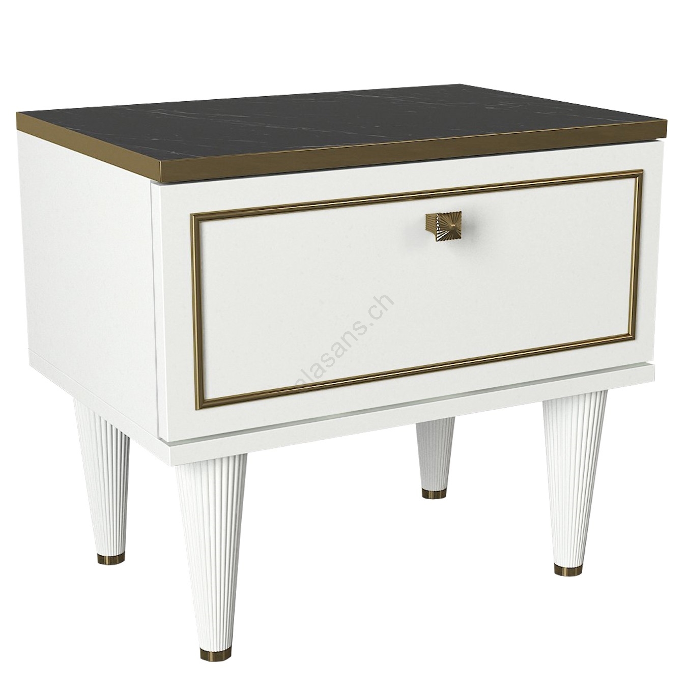 Table de nuit RAVENNA 47,2x50 cm blanche/noire/dorée