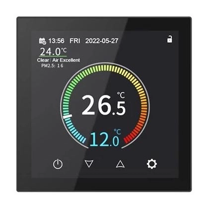 • Thermostat tactile intelligent conçu pour une régulation précise de la température dans les logements, bureaux ou résidences de vacances.