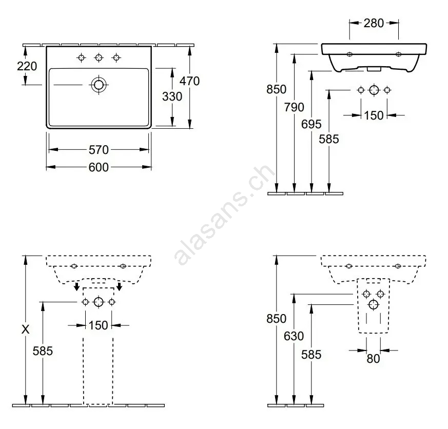 Lavabos et éviers, Marques, Salle de bains, Vasques suspendus, Villeroy & Boch