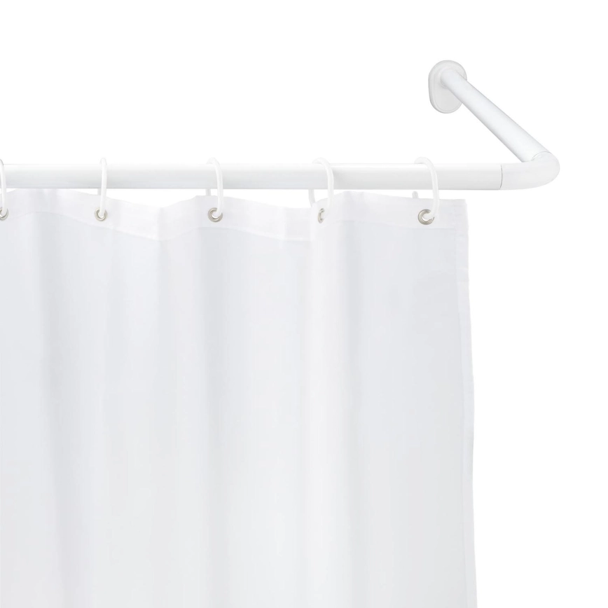 • Barre d'angle universelle pour rideaux de douche et baignoires.