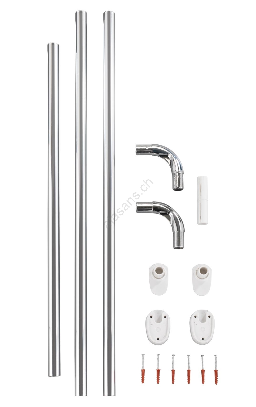 • Allie un chrome brillant à des éléments de fixation en plastique blanc.