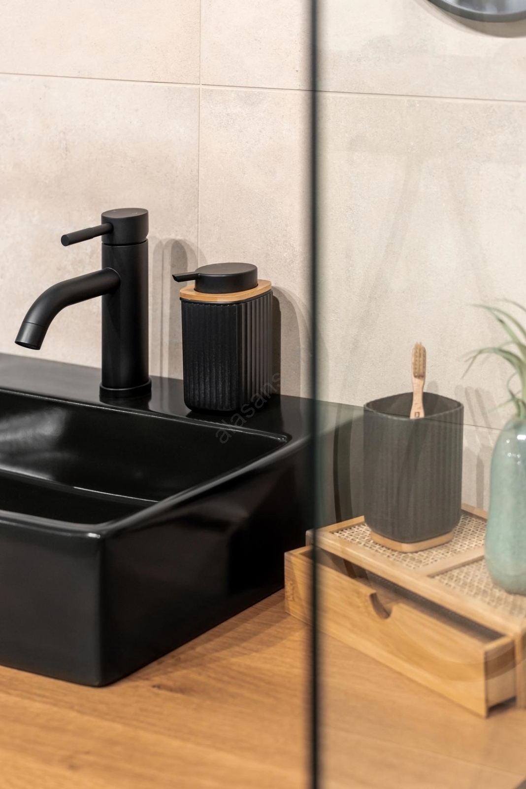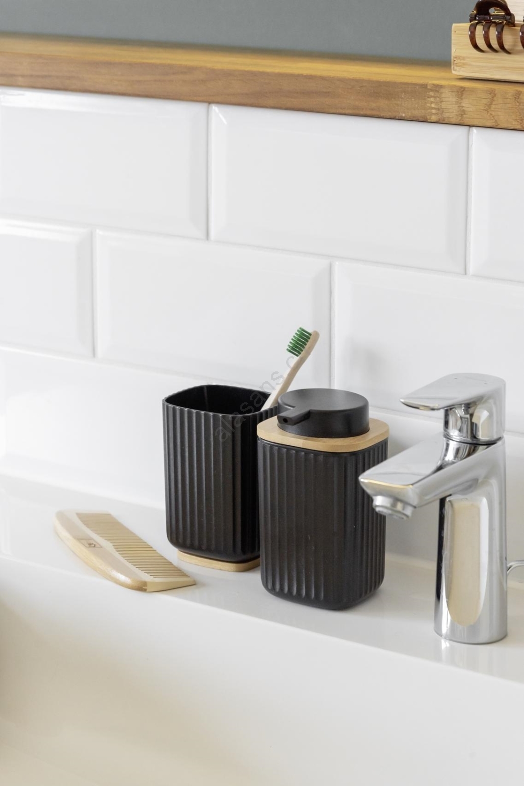 WENKO 25297100 - Gobelet porte-brosse à dents ROTELLO 8,5 x 11 cm noir/marron