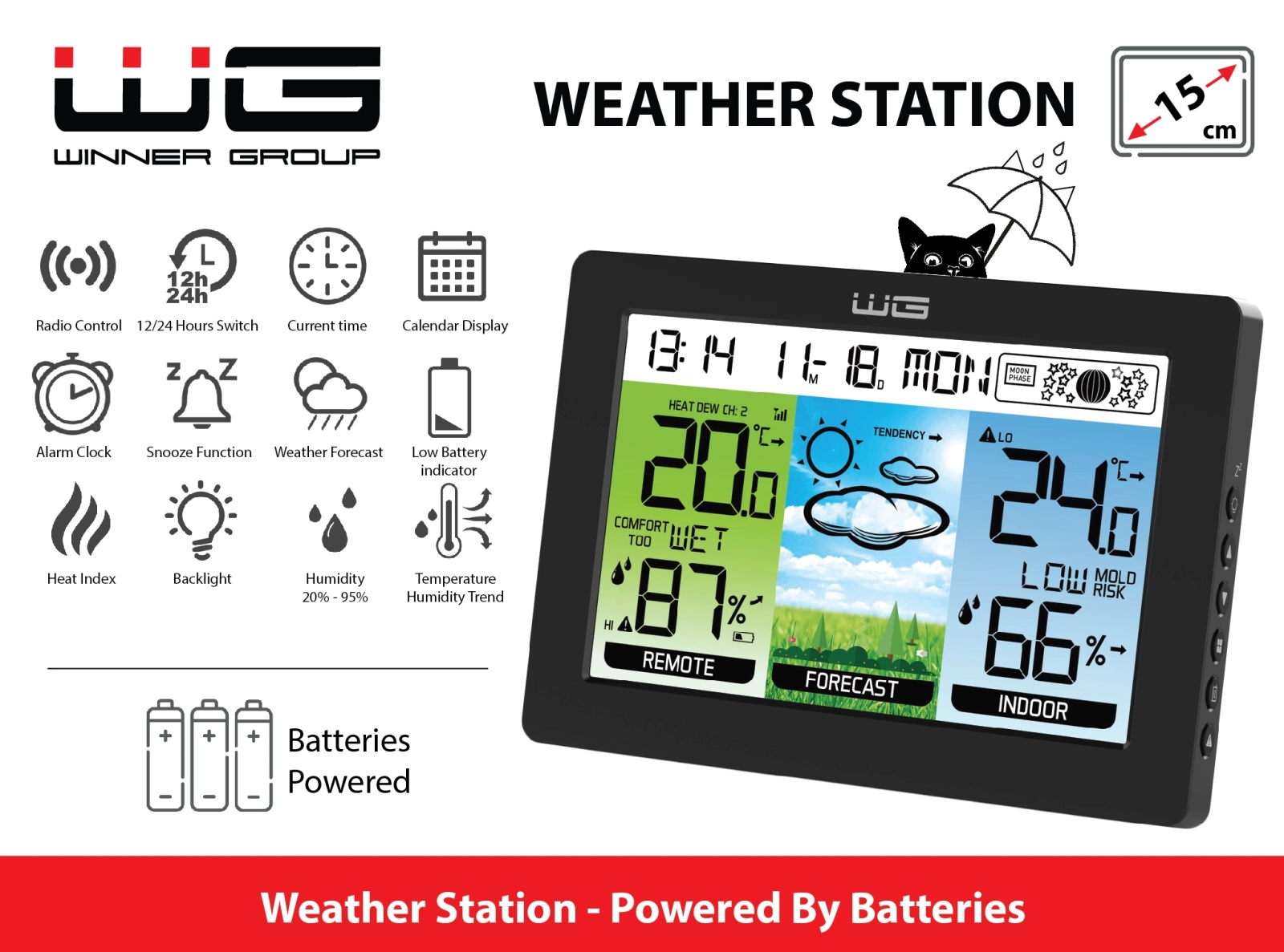 Winner Group - Station météo avec écran LCD et réveil, alimentée par 5 piles AAA