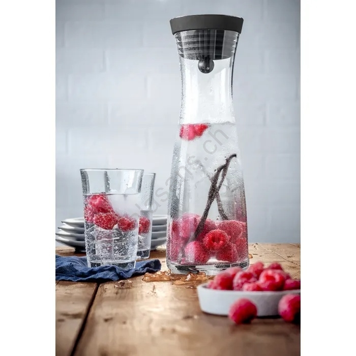 • Elle est dotée d'une passoire intégrée qui retient efficacement les glaçons ainsi que les morceaux de fruits et d'herbes à l'intérieur de la carafe.