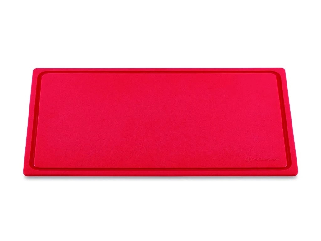 • Le set comprend également une planche à découper rouge de dimensions 380 x 250 x 4 mm, offrant une surface de travail hygiénique.
