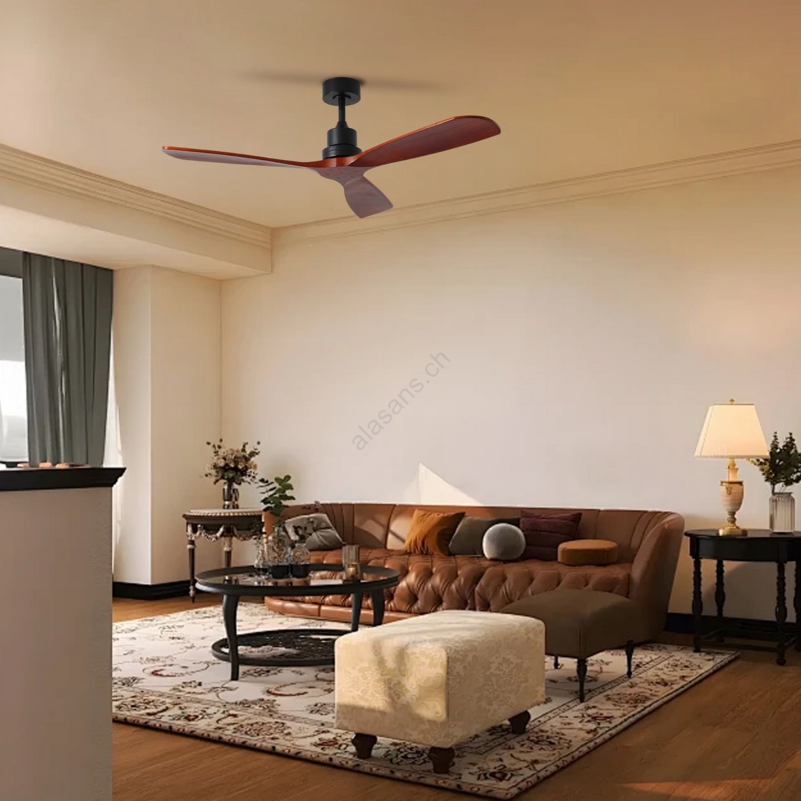 • ZEVENTI - Ventilateur de plafond LIONI Wi-Fi Tuya noir/chêne + télécommande