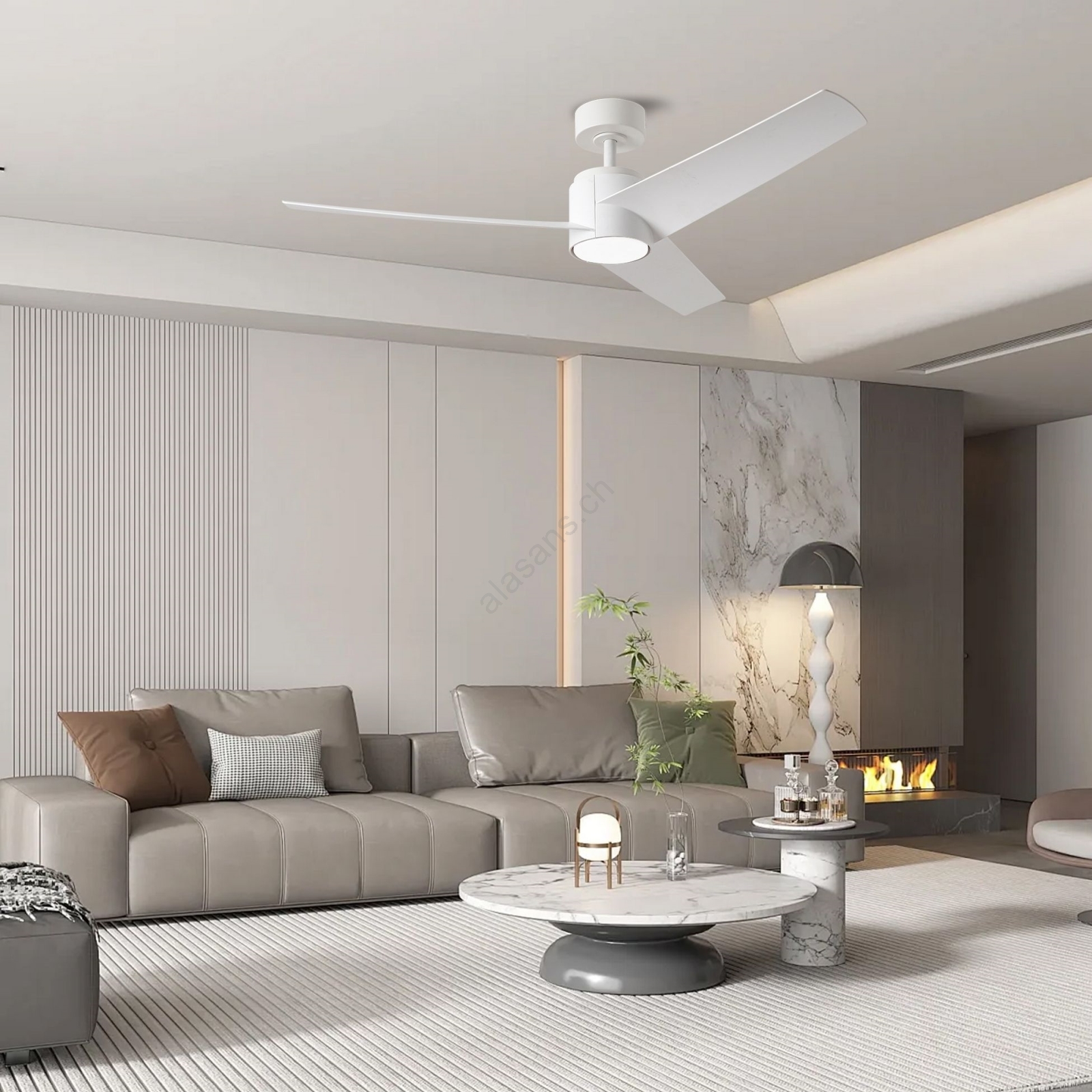 • Le ventilateur de plafond avec éclairage LED rafraîchit la pièce pendant les chaudes journées d'été.