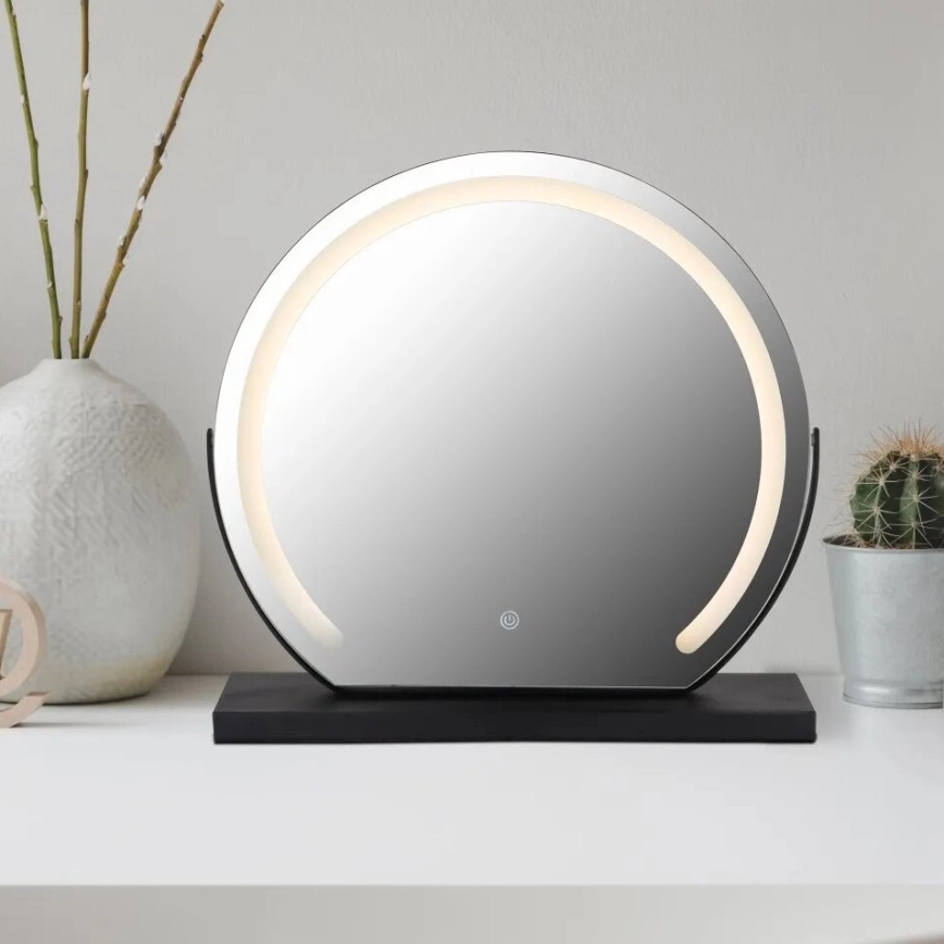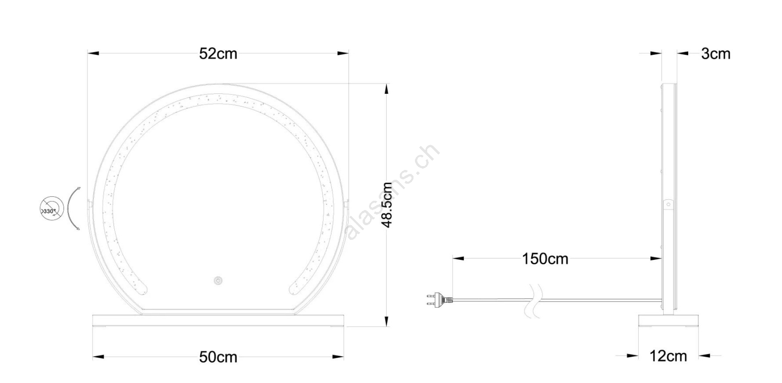 • Am unteren Rand des Spiegels befindet sich eine Touch-Taste zum Ein- und Ausschalten sowie zur Einstellung der Helligkeit.