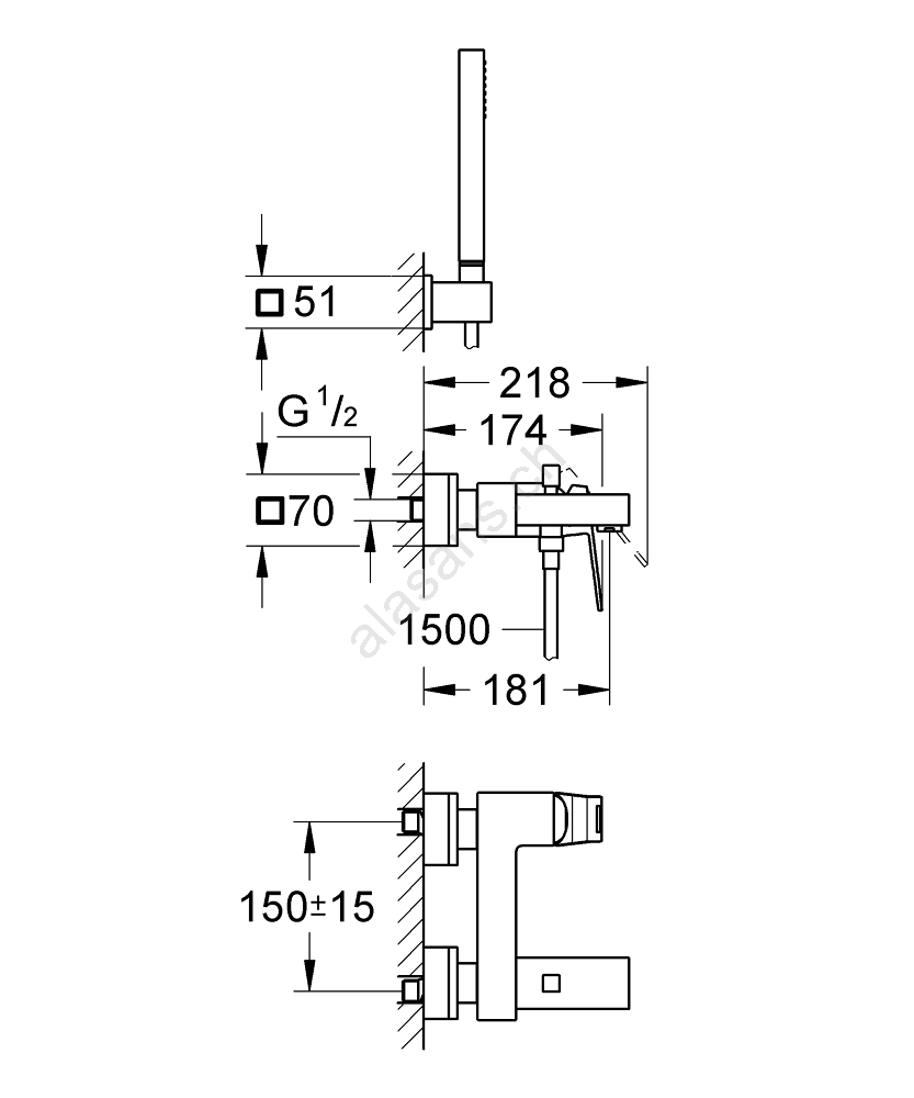 • Im Lieferumfang enthalten: Handbrause (27 698), Wandhalter (27 693) und Brauseschlauch 1500 mm (28 151 000).