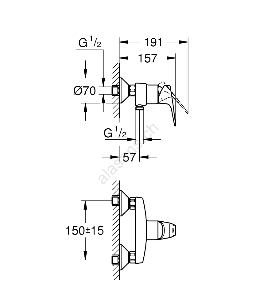 • Moderne Einhebel-Duscharmatur zur Wandmontage.