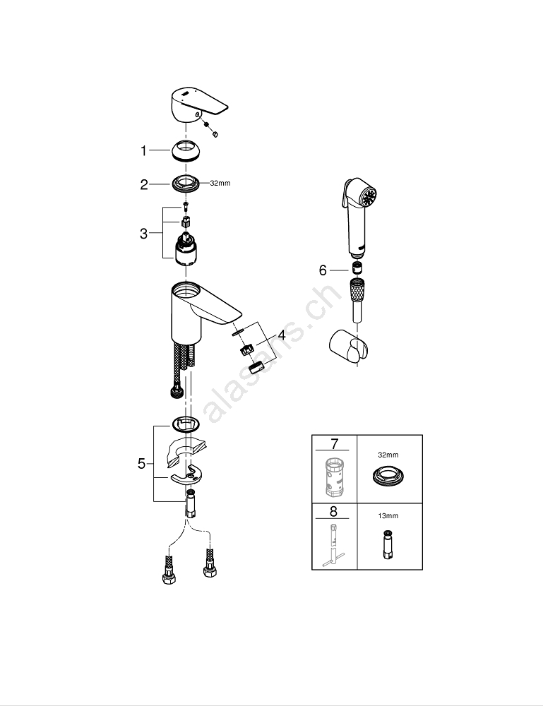 • Einhebel-Waschtischarmatur mit integrierter Bidetbrause für maximale Hygiene und Komfort.