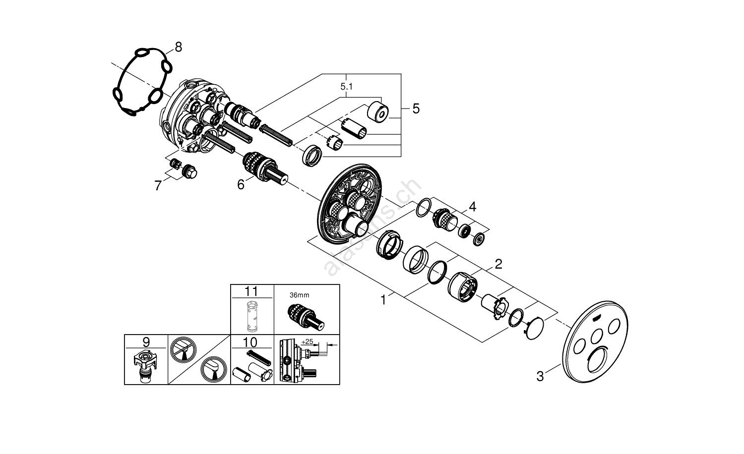 • Kompatibel mit dem Unterputz-Einbaukörper GROHE Rapido SmartBox (35 600/35 604), der separat bestellt werden muss.
