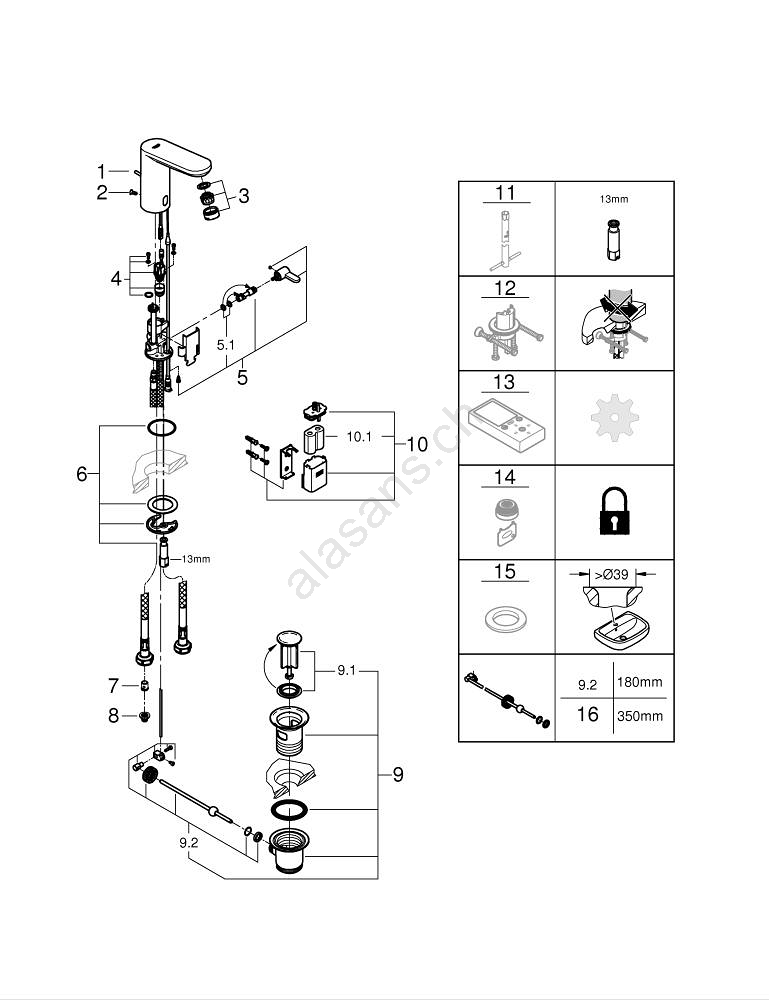 • Berührungslose Waschtischarmatur mit Infrarotsensor zur Überwachung, Einstellung und Wartung.