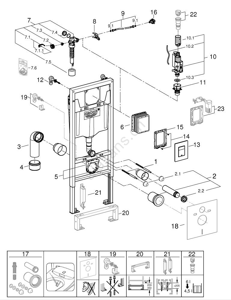 • 3‑in‑1-Set für die komplette Installation eines wandhängenden WC-Systems.