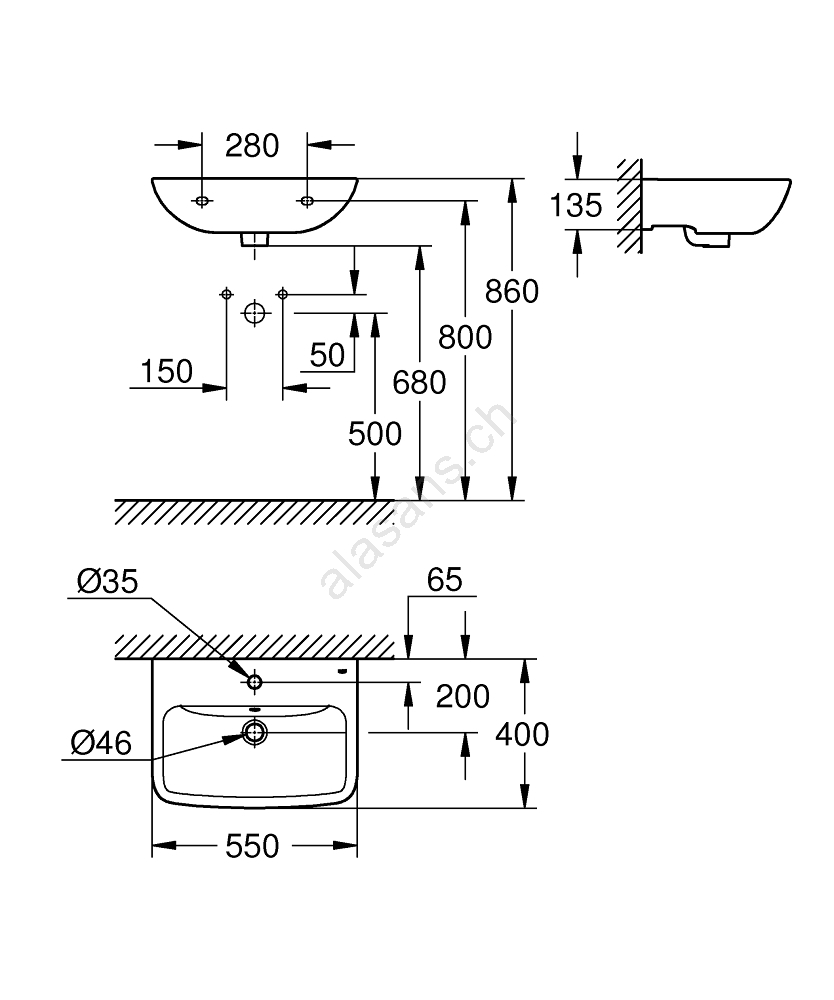 • Abmessungen 550 x 400 mm ideal für kleinere Badezimmer.