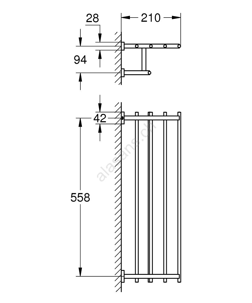 • Untere Stange ermöglicht komfortables Trocknen der Handtücher.