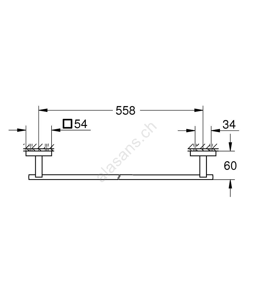 • Länge 600 mm mit einer nutzbaren Länge von 558 mm für bequemes Aufhängen der Handtücher.
