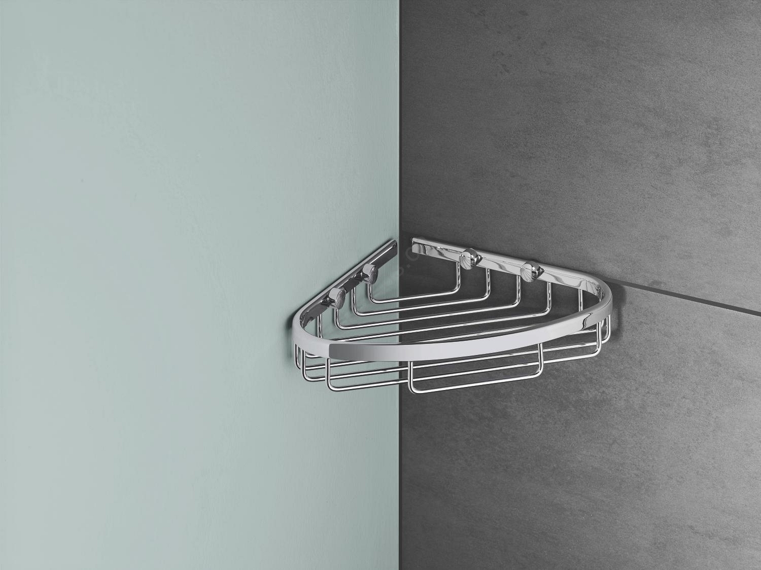 • Drahtseifenkorb zur Eckmontage spart Platz in Ihrem Badezimmer.