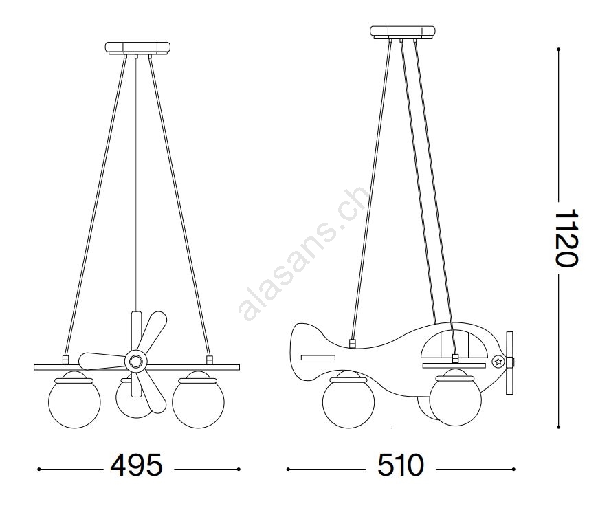 Ideal Lux - Kinder-Hängeleuchte AVION 3xE27/28W/230V blau